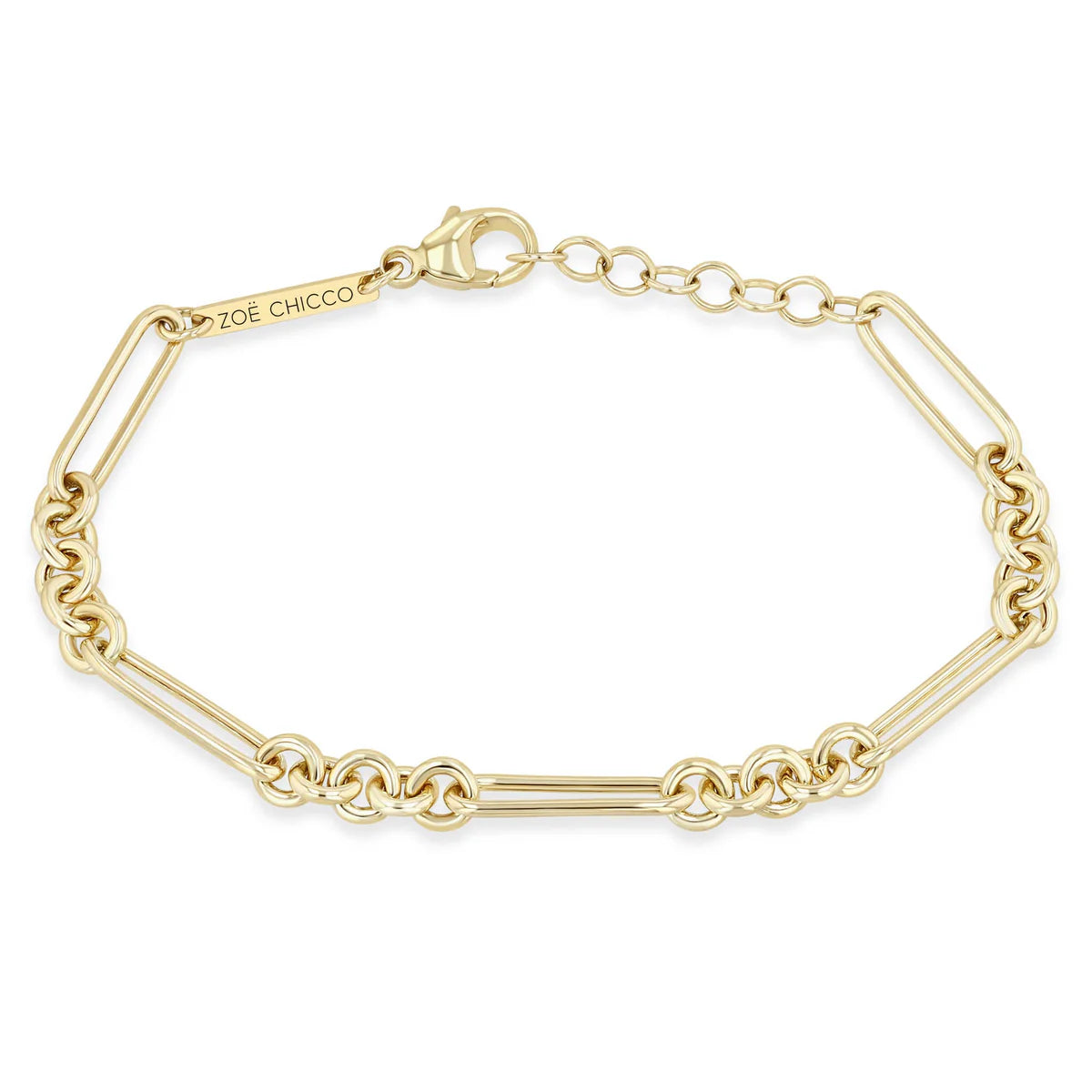 • 14k large paperclip rolo chain is adjustable from 6-7" with a lobster clasp closure