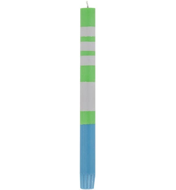 10'' H Striped Nanking Blue, Grass Green & Willow Grey Eco Dinner Candles, Gift Box of 4