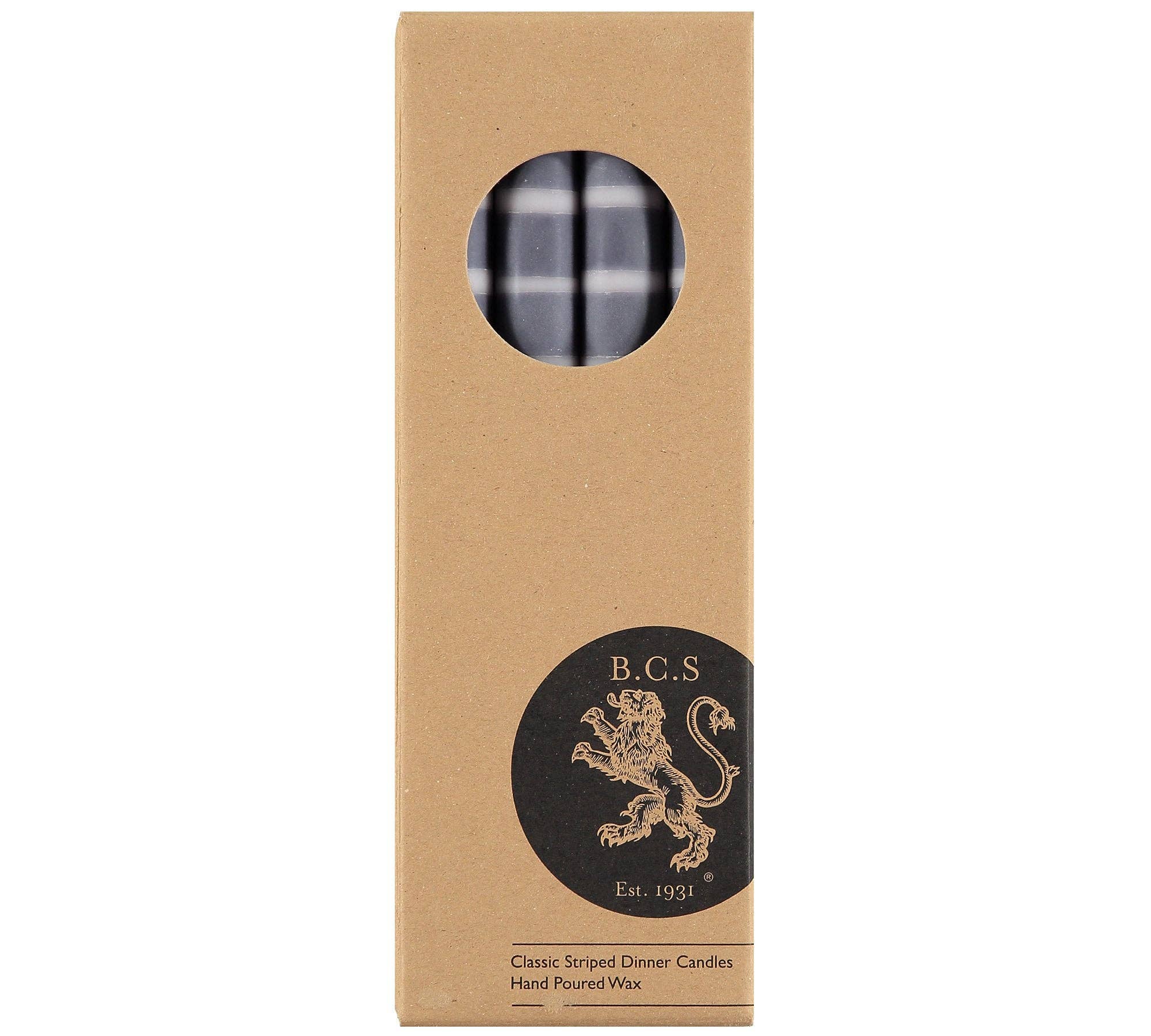 Striped Gull, Gunmetal Grey + Old Rose Eco Dinner Candles, Box of 4