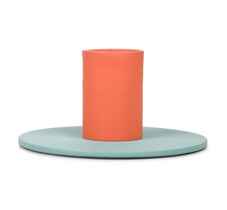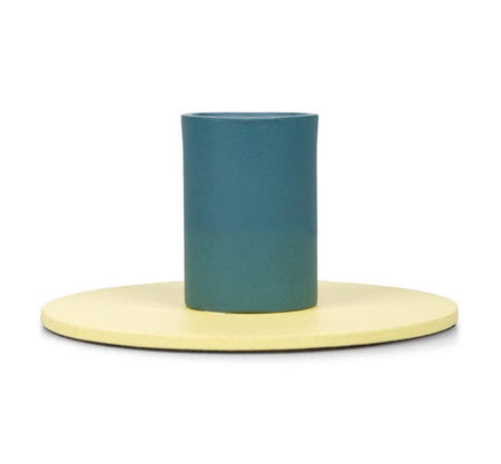 Tall Two-Tone Indigo & Olive Metal Candleholder