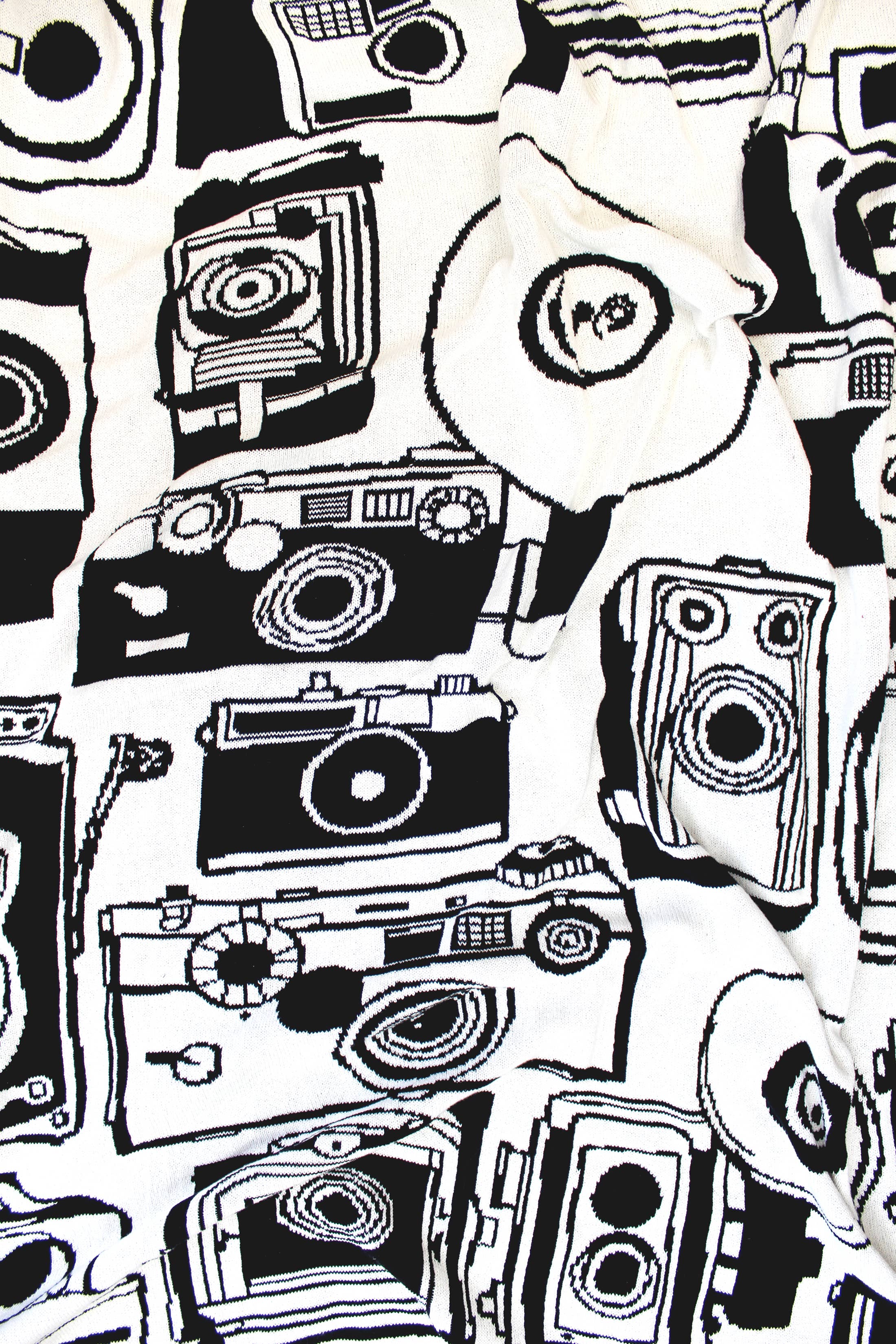 Vintage Cameras Reversible Knit Blanket
