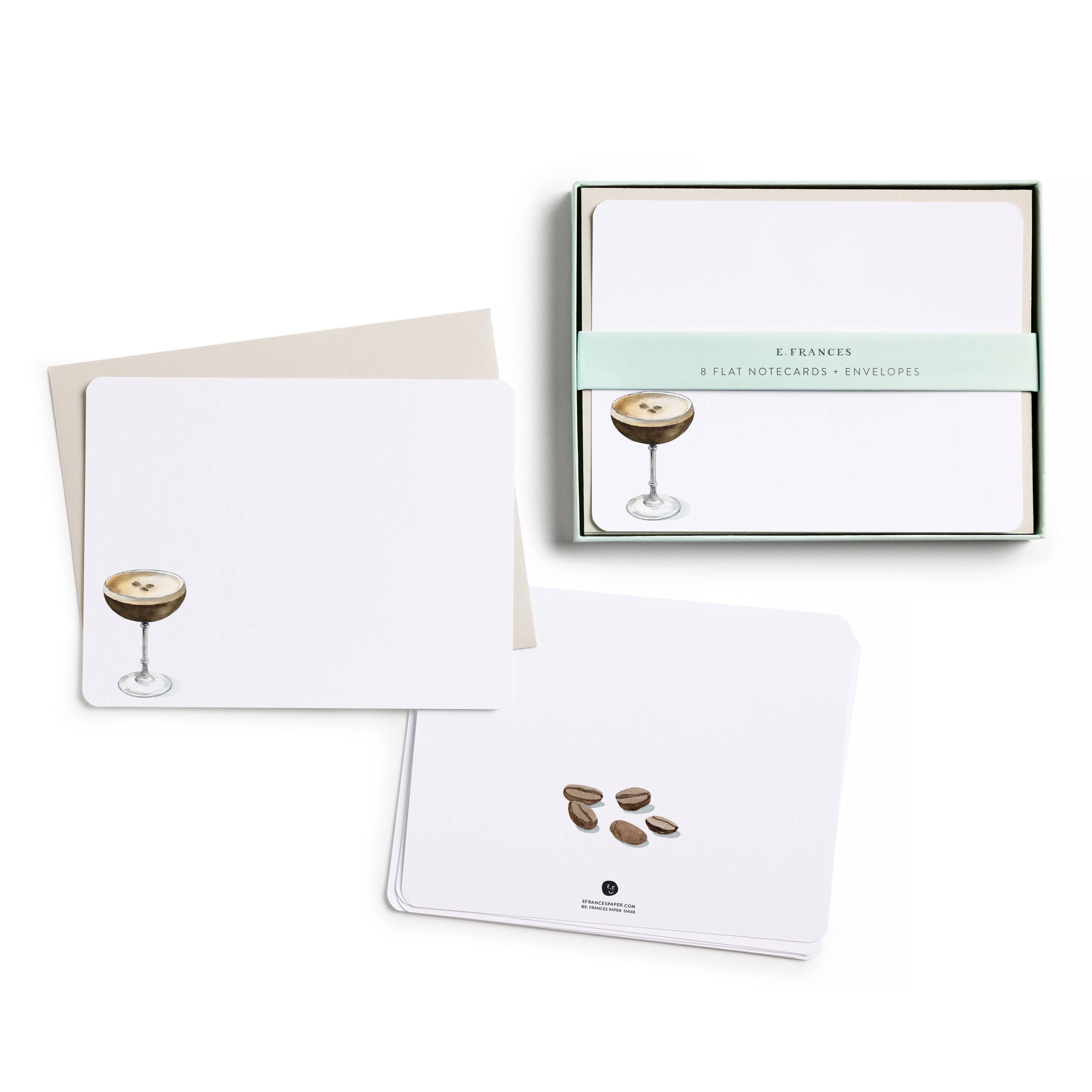 A flat note is concise, smart. Not ostentatious, but clever. Just enough room to be well-edited. Beautiful watercolor notecards ready for your thoughtful words. This set includes 8 adorable notecards and envelopes, each with a fun illustrated back to add a touch of fun. Proudly made in the USA with care and love. Raise a toast with the Espresso Martini Flat Note Set, perfect for cocktail lovers and stylish stationery fans. These elegant flat notes are ideal for thank you cards, party invitations, or celebration messages. Perfect gift for espresso martini enthusiasts, bartenders, and cocktail party hosts!