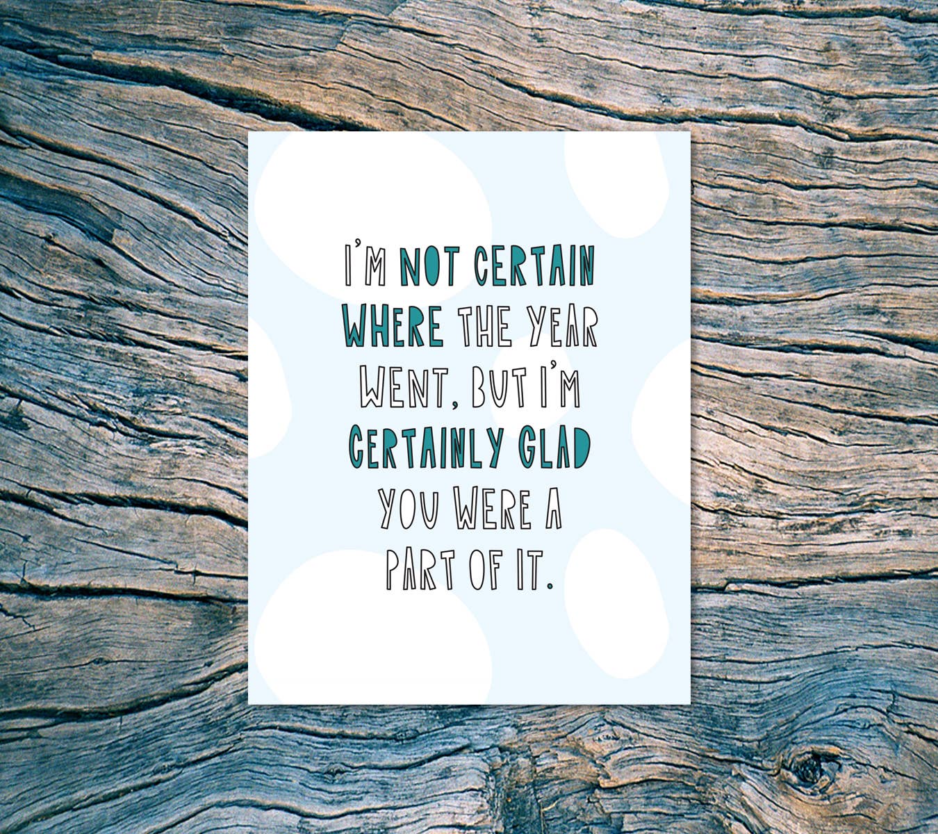 A2 size (4.25" x 5.5”) Blank Inside. Printed on FSC certified 130# stock. Paired with a kraft envelope. Packaged in a clear open-top cello sleeve. Design by Near Modern Disaster