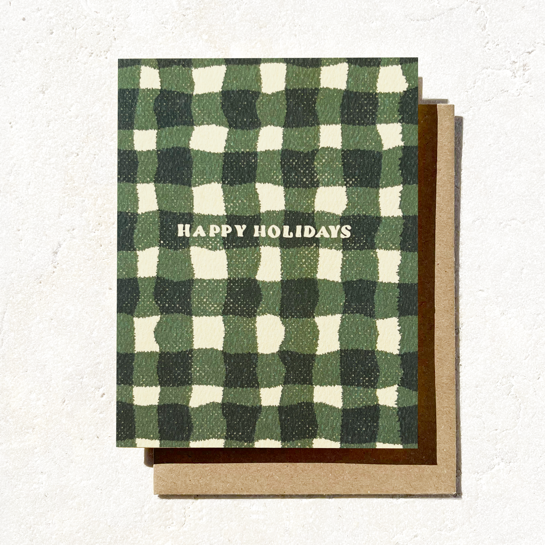 Merry Christmas - a classic plaid Holiday card featuring a pine green check print Our greeting cards are: • A2 size card (4.25" x 5.5") • Blank inside • High-quality digital print on thick, premium textured cardstock • 100% recycled envelope • Packed in an eco-friendly biodegradable clear sleeve • Made locally in Portland, Oregon, USA Our cards have a signature retro, beach vibe. We are known for our use of color and will surely bring a pop of brightness and fun to your shelves. We stand proudly behind the quality of our cards - it is often the first thing retailers comment on. Our card assortment covers many occasions. The collection includes: • Birthday cards: funny cards for your best babes • Love cards: cards for weddings, anniversaries and valentines day • Everyday cards: just because cards, and friendship cards to keep on hand • Thank you cards: appreciation cards to show thanks • Holiday cards: Christmas and Thanksgiving This is a simple, classic green Christmas card
