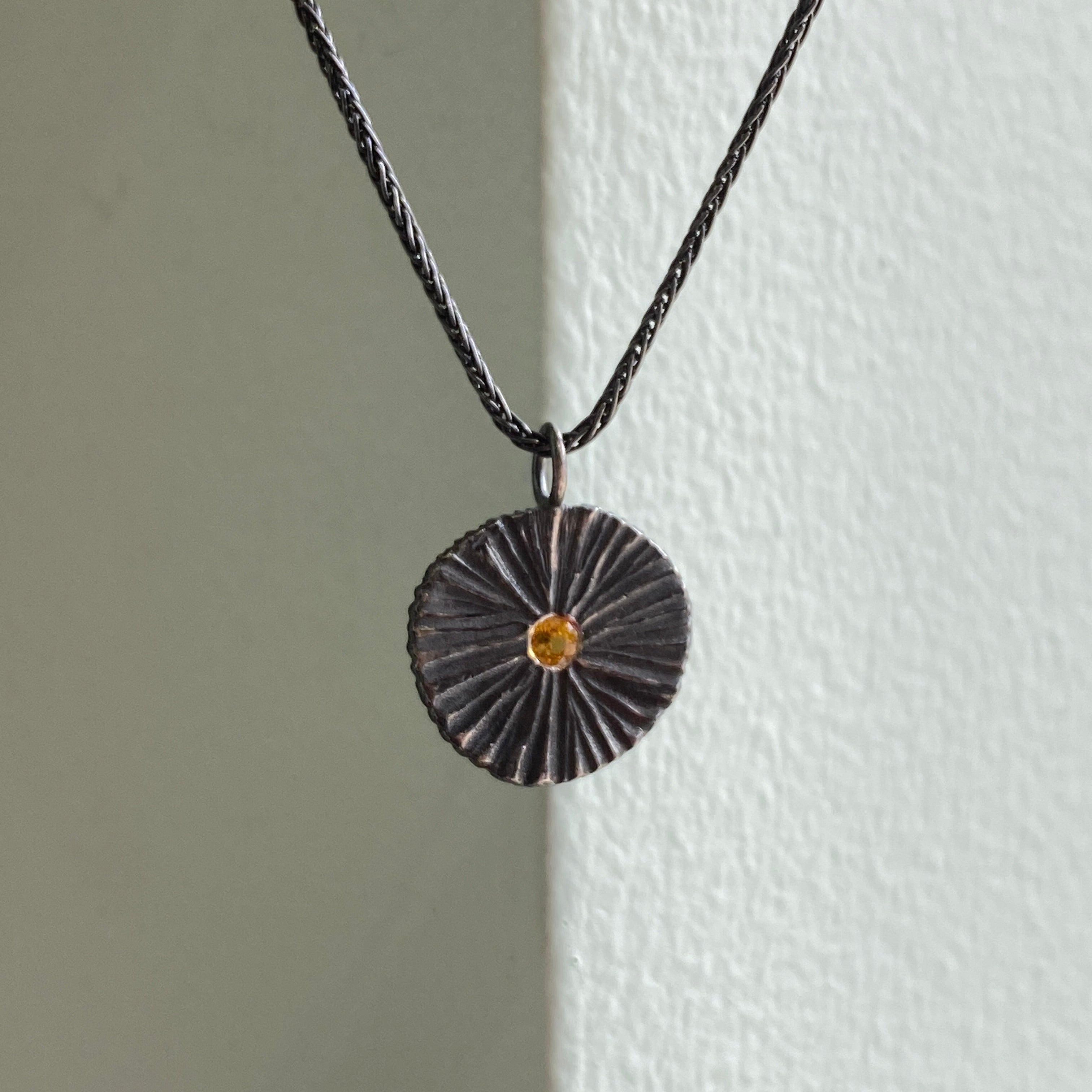 - Oxidized sterling silver, faceted yellow sapphire