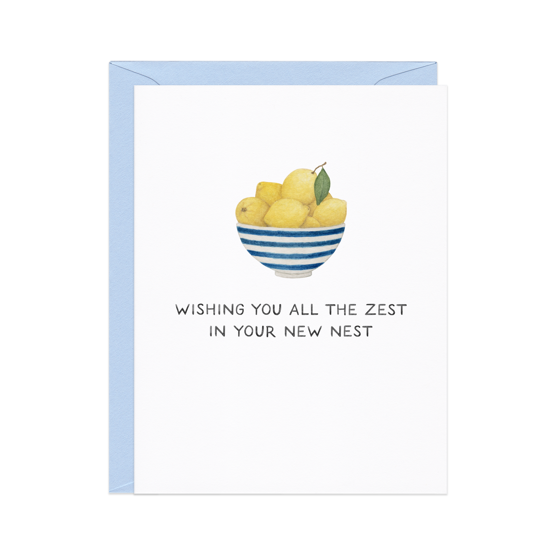 This congrats card features a lovely bowl of lemons, paired with a cute citrus pun. Great for: new home, moving, housewarming, graduations, retirement All Amy Zhang products feature original watercolor illustrations and are painted, designed, and packaged in-house in New Hampshire. Greeting cards are printed in New England on locally-sourced paper. DETAILS — - Single folded greeting card (blank inside) - Card measures 4.25" x 5.5" (A2 size) - Matching blue envelope included - Card and envelope are packaged in open top clear sleeve