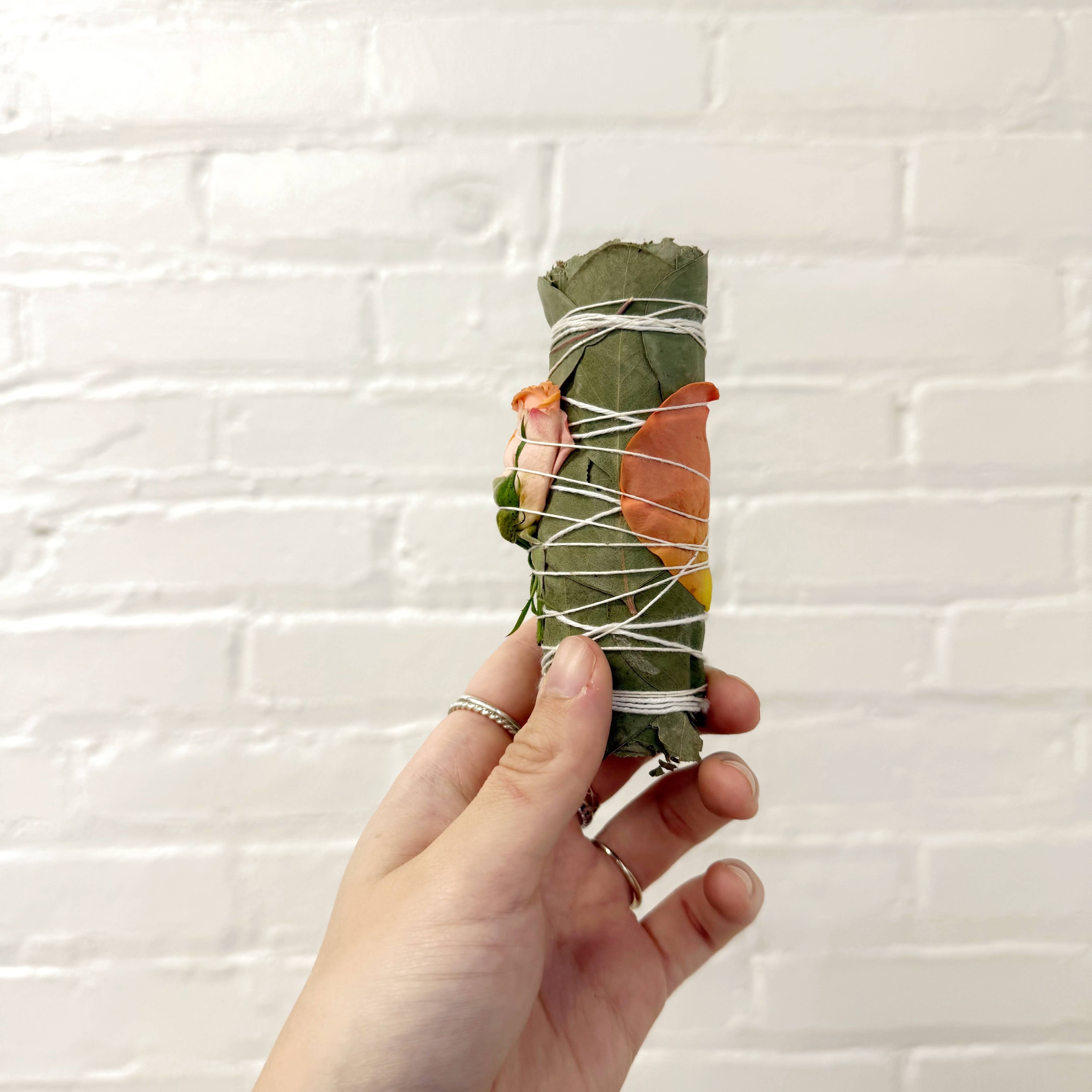 *These bundles will be dried before shipping, the color of the petals will darken in this process!* Our Harvest Moon Small Eucalyptus Bundle is handmade in our Rochester, NY using white cotton string to hand-tie a rose and a rose petal to ethically sourced eucalyptus. Every bundle has a unique look, no two are exactly alike, though they keep to a warm red-orange palette. Each piece is one of a kind, the size of the eucalyptus and roses varies, as we work with natural materials. Every Catherine Rising piece is assembled with care, by hand, by our close-knit team. While we do our best to keep stock of each product on hand and ship out orders as quickly as possible, we ask that you please allow one to three weeks for turnaround time.