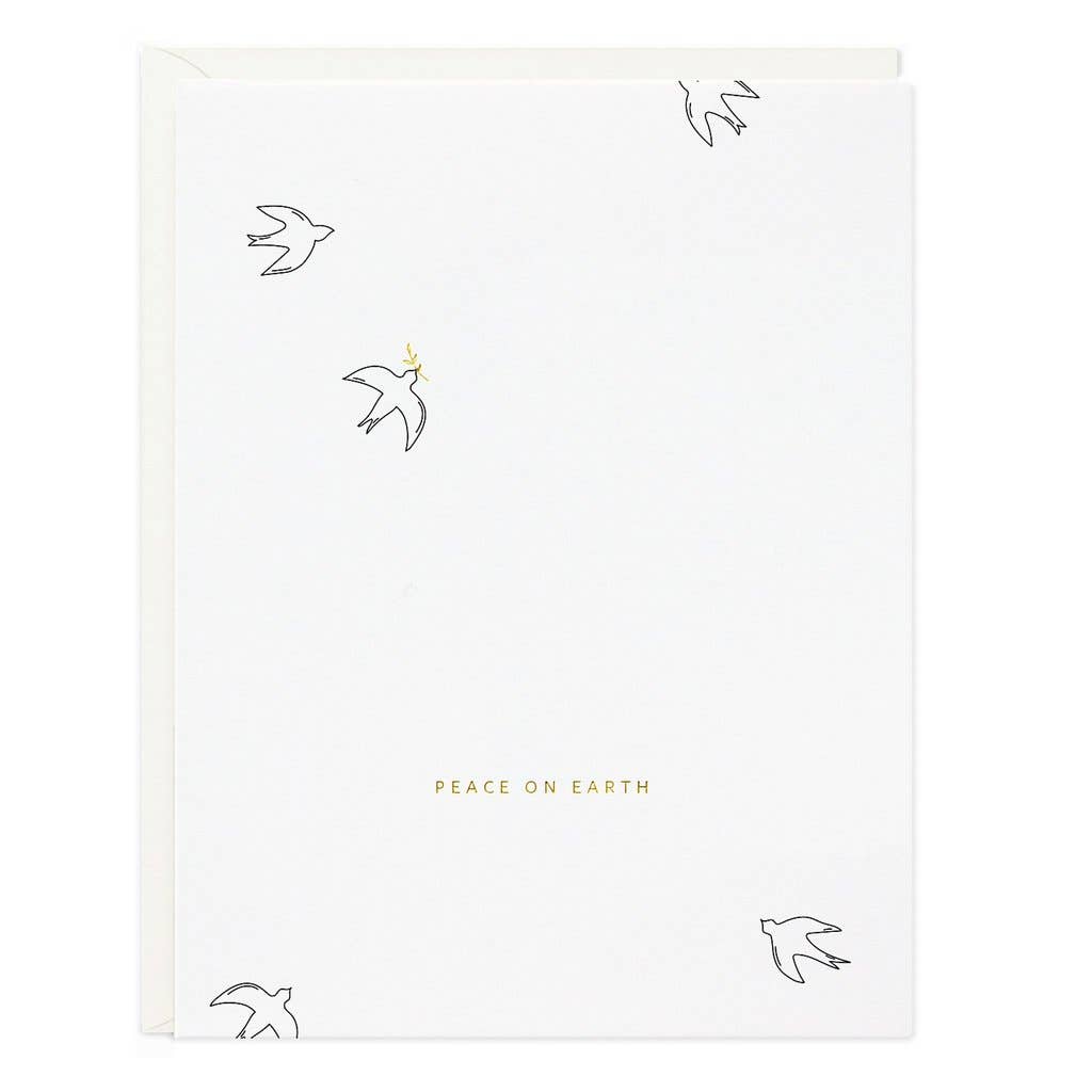 Spread a little holiday cheer and peace on earth with our hand-illustrated doves complete with gold foil accents. Paper: 100% cotton paper | Envelope color: soft white | Size: A2 folded 4.25” x 5.5” | Printing Type: letterpress + gold foil | Additional Notes: blank inside