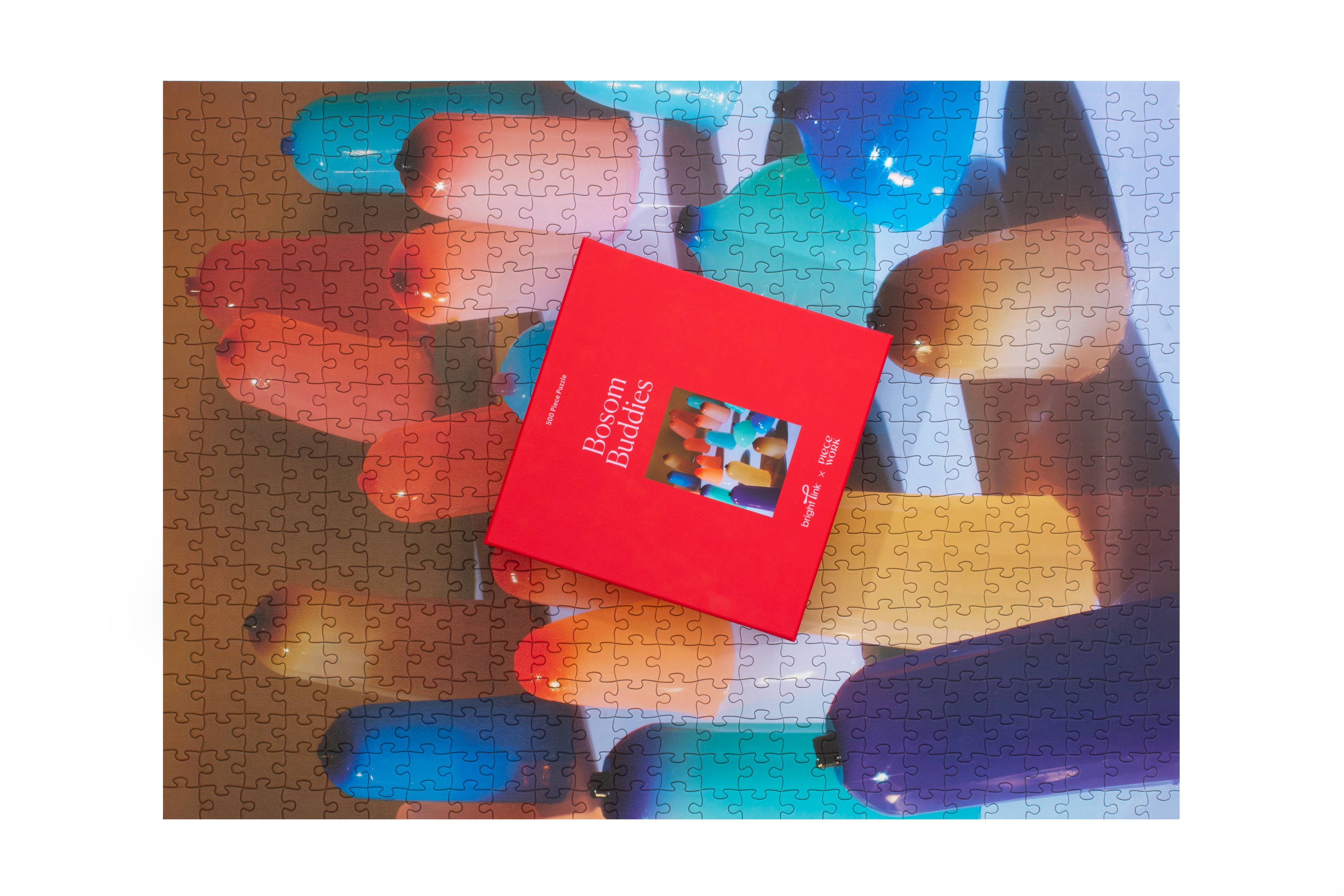 Meet Bosom Buddies! This delightful array of jello boobs — sculpted and photographed by Doan Ly — benefits Bright Pink, a non-profit focused on saving lives from breast and ovarian cancer. More than just treasuring our tatas, Bright Pink empowers others to know their risk and manage their health proactively. With plentiful shapes and colorful forms, this 500-piece puzzle is perfect for focused fun. PRODUCT INFORMATION 500 piece puzzle Completed puzzle is 19.25 x 26.6 inches Box is 8 x 8 x 2 inches Thick stock and high-quality art paper Not suitable for children Board is 100% recycled paper