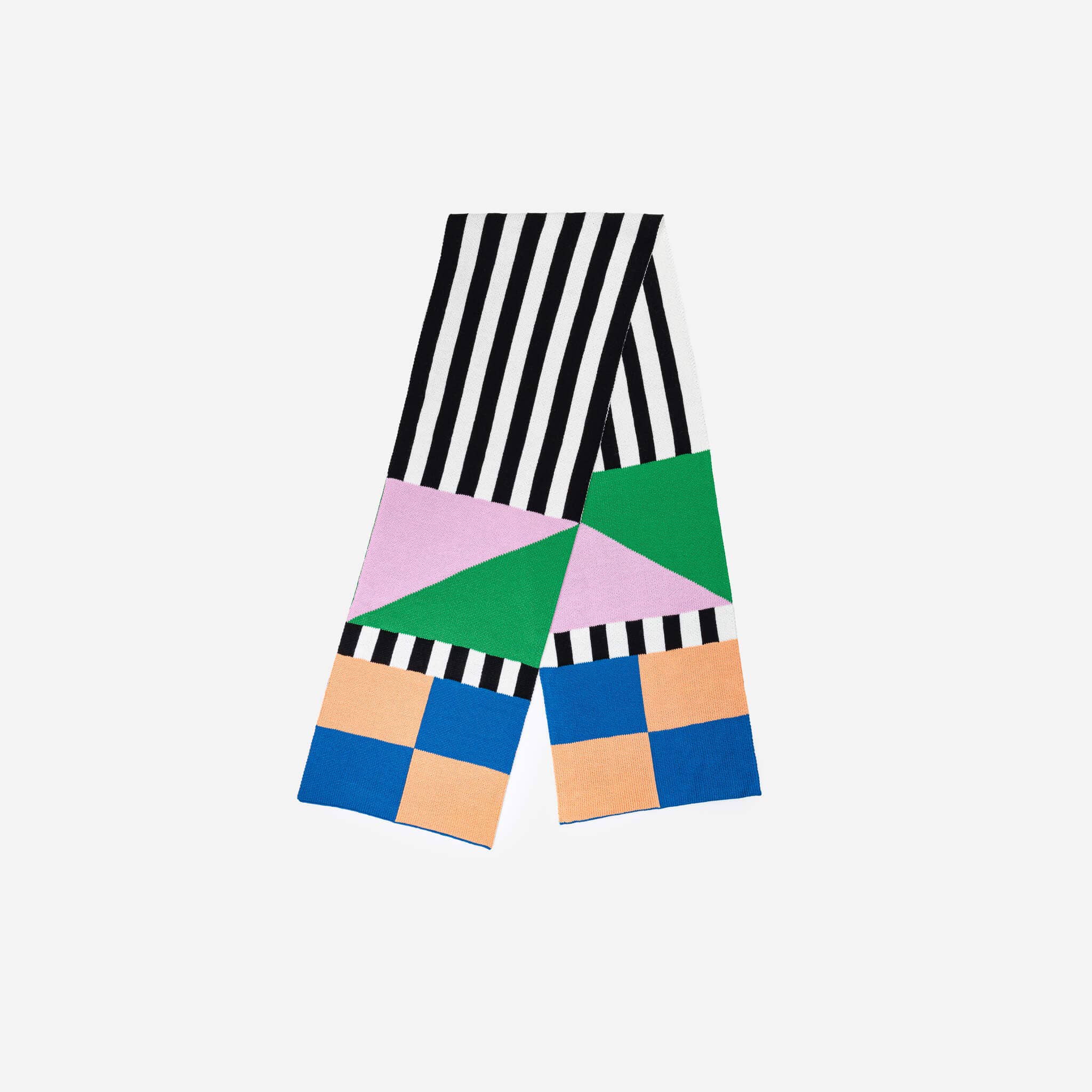 Oversized, soft jacquard knit scarf with varied horizontal stripes. Layer on the color with this big, comfy, cozy scarf all fall and winter long. Can be worn long or wrapped up like a cowl for extra warmth. Fully reversible. Made with new and repurposed deadstock yarn. Details 100% Soft Acrylic Machine wash cold gentle cycle, dry flat 12"W x 76"L