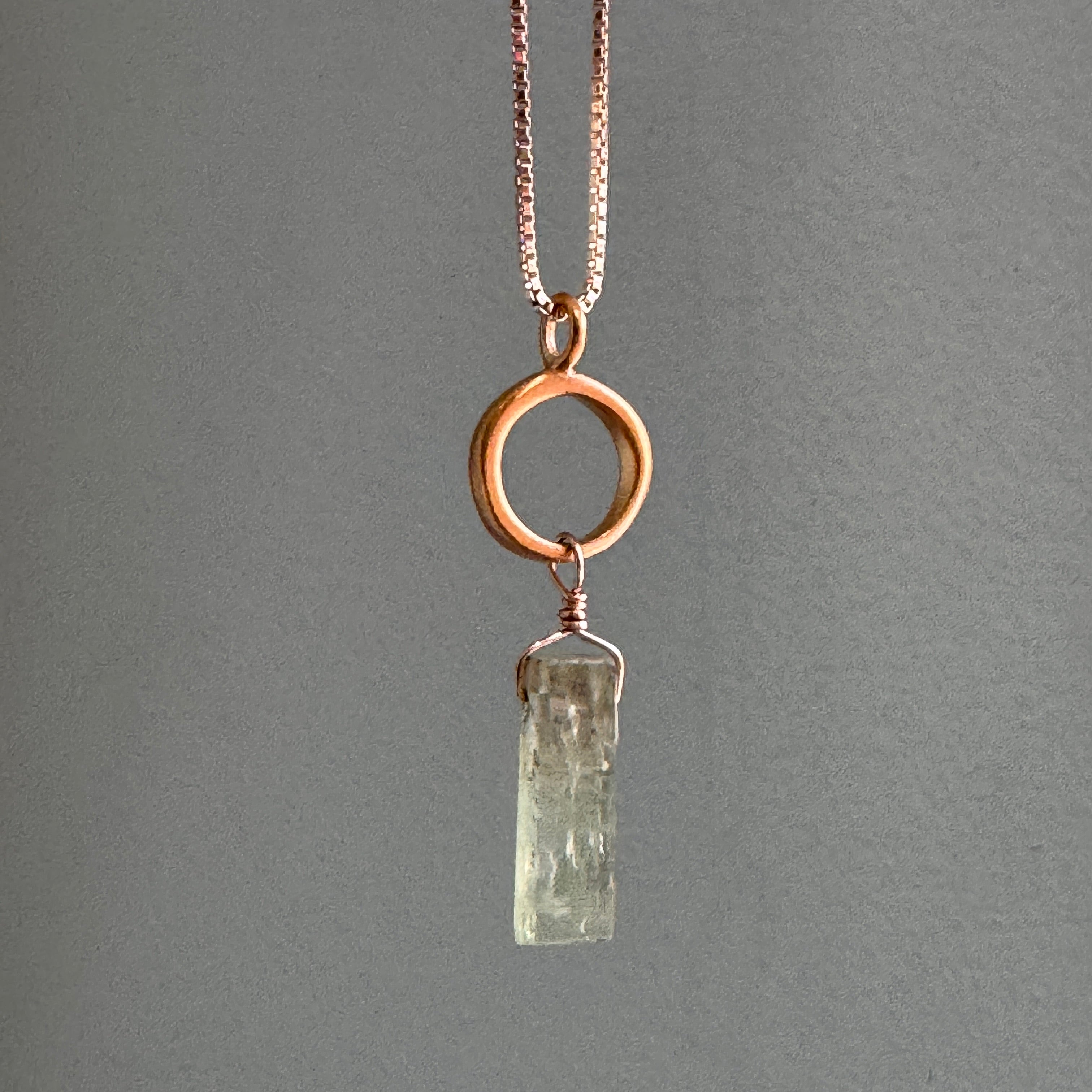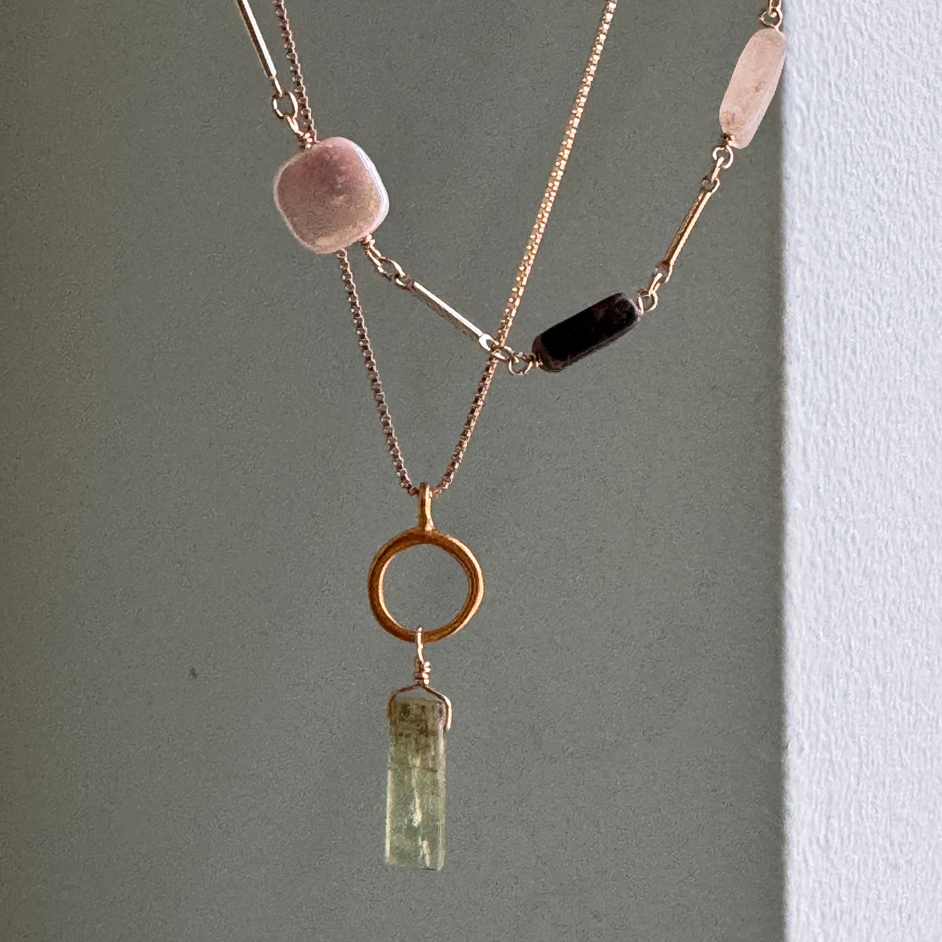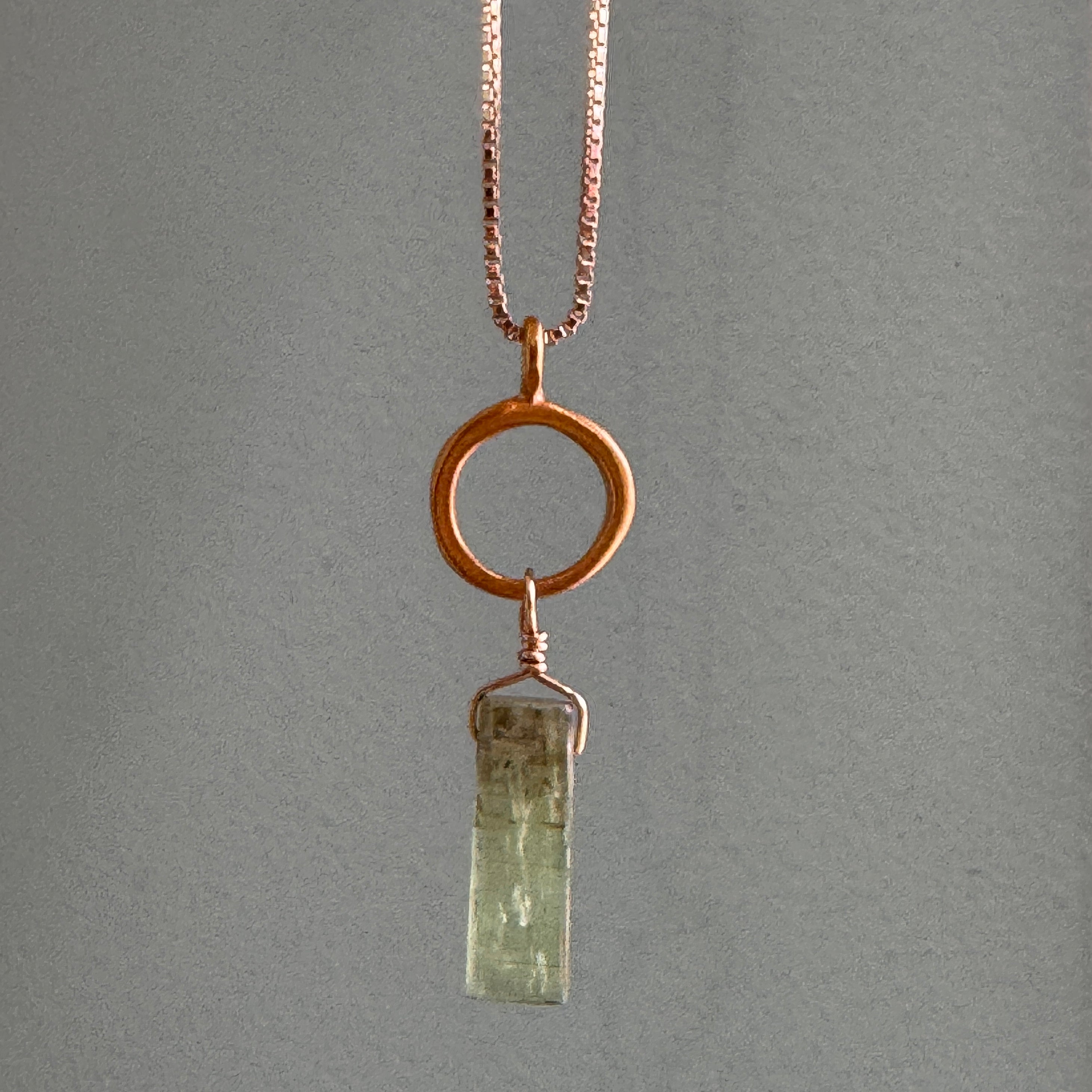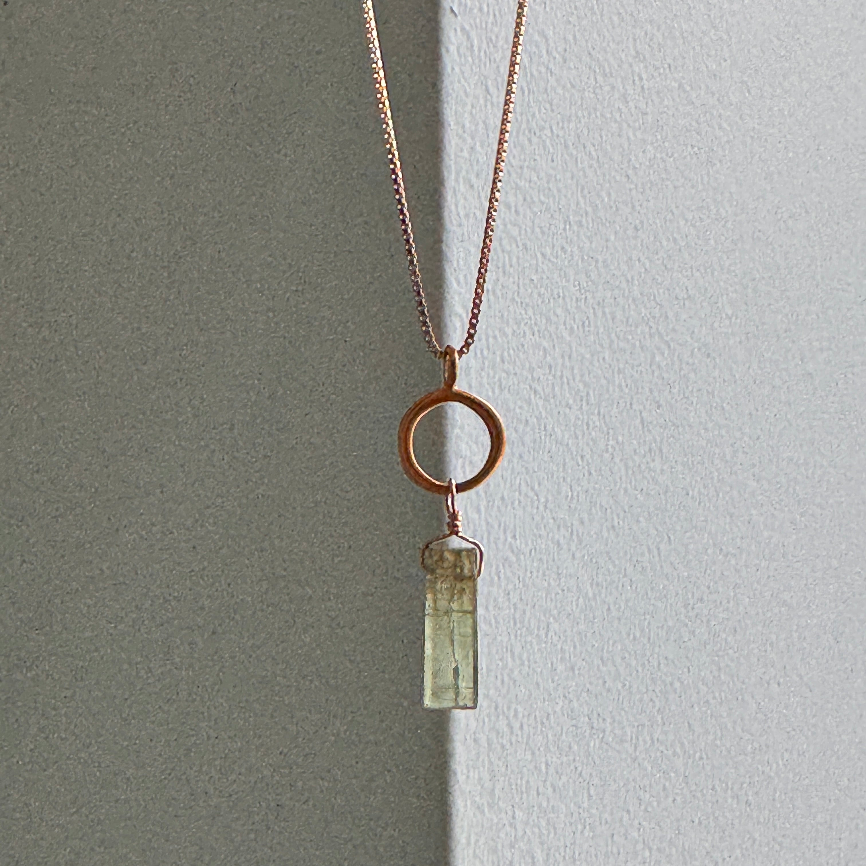 Circle w. Green Kyanite Necklace in Silver or Vermeil: Vermeil