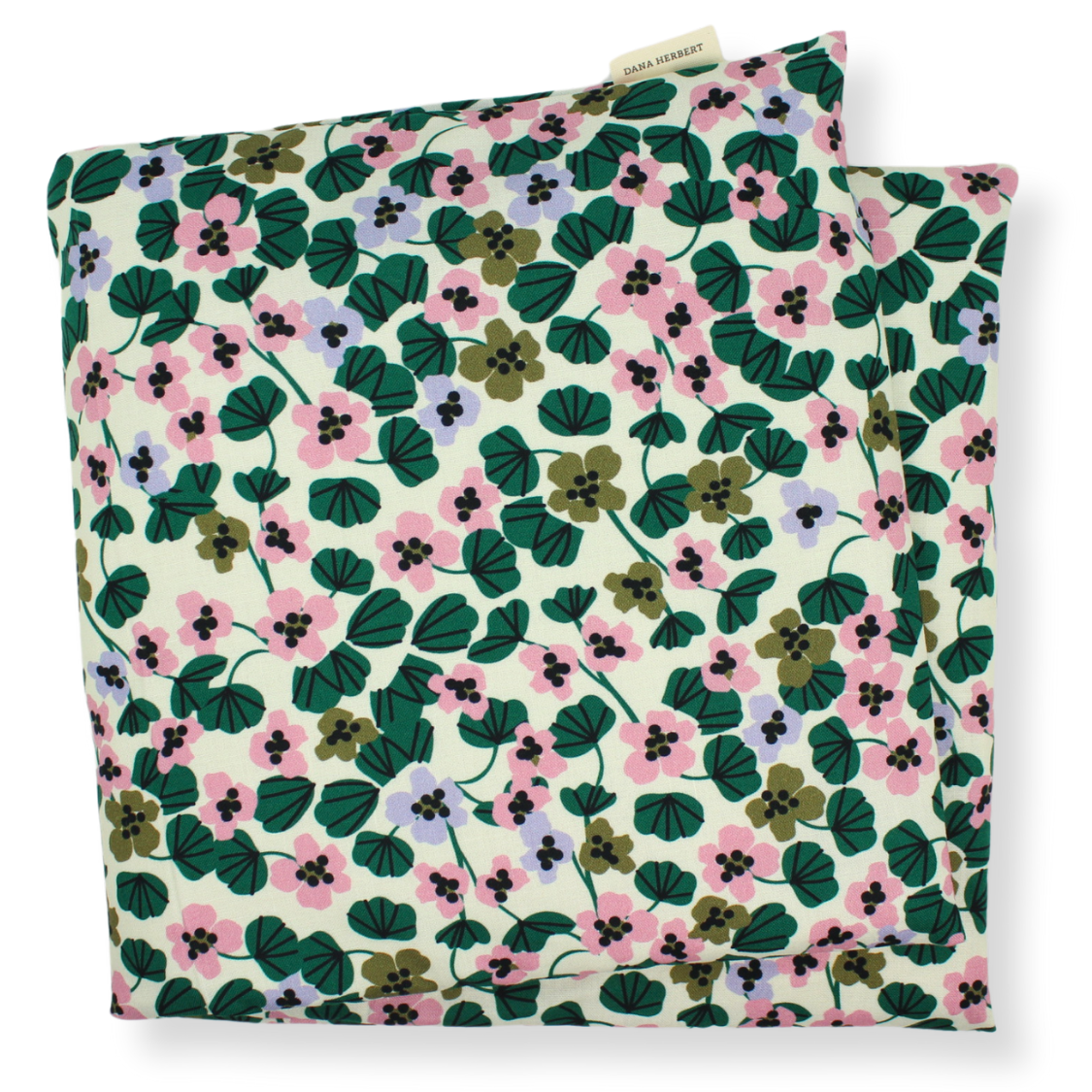 Sweet Dreams relaxation aromatherapy large heat wrap in a variety of cotton prints. Hand filled with flaxseed and lavender. Can be used hot or cold, and features a removable and washable cover. Directions: Heat wrap can be left in the freezer for at least 20 minutes to chill. To heat, place heat wrap in microwave for 1-2 minutes, making sure to test temperature to the touch before applying to body. Measures 9.5" x 20" and comes boxed.