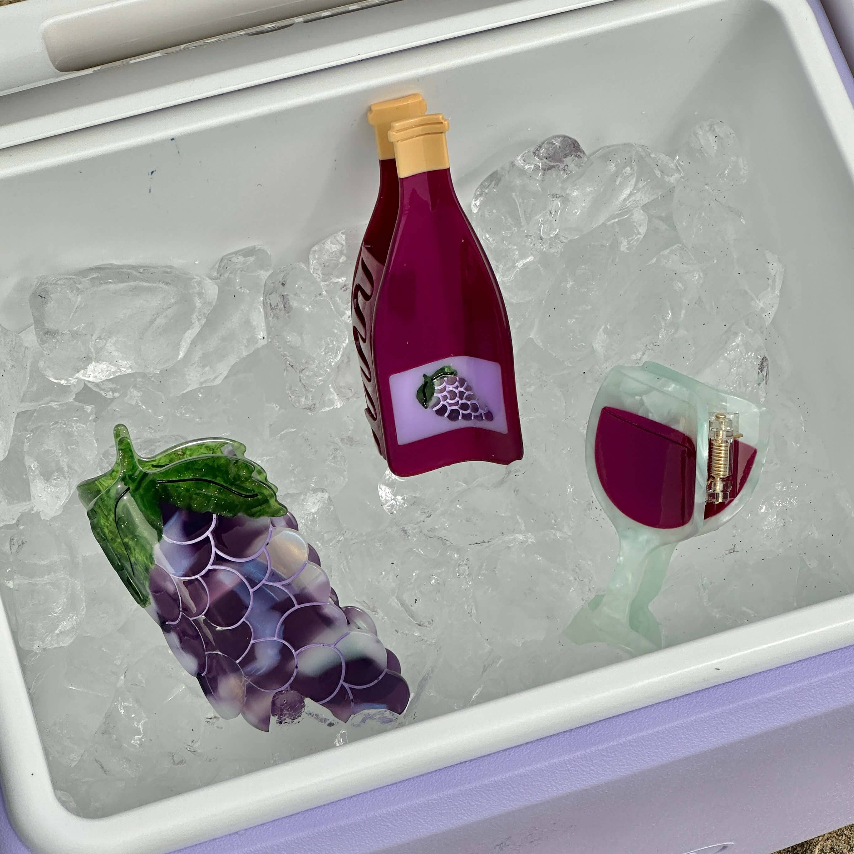 Uncork some style! This red wine bottle hair claw is a 4" x 1.5" food-themed clip made from eco-friendly cellulose acetate. Hand-painted with juicy grape details and a vintage-style label, it’s the perfect sustainable hair accessory for wine lovers, dinner party queens, and anyone craving a little vineyard-inspired flair.