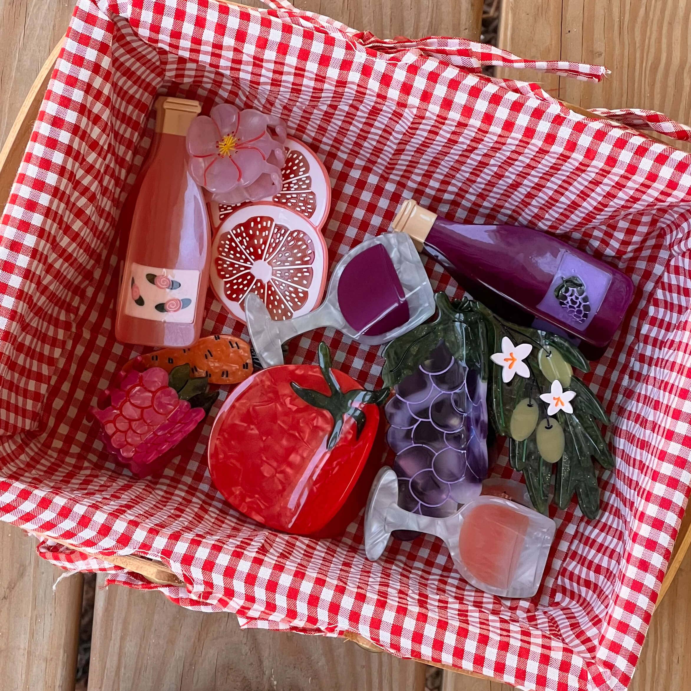 Rosé all day? Yes, please. This rosé wine glass hair claw is a food-themed, eco-friendly hair accessory made from cellulose acetate. At 3" x 1.5", this handmade pink beauty adds a sparkling twist to your ‘do. Perfect for wine lovers, brunch besties, and anyone obsessed with cute rosé hair clips that say, “cheers” to fun style.