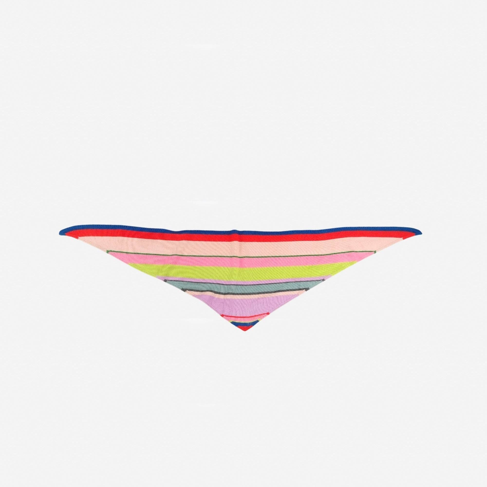 Soft, versatile triangle scarf with mixed-width multicolor striping. Wear it knotted or tied as a neckerchief, shawl, or bandana. Perfect for transitional outfits, indoors and out. Knit with hypoallergenic yarn. Details 100% Soft Acrylic Machine wash cold gentle cycle, dry flat 15"W x 50"L