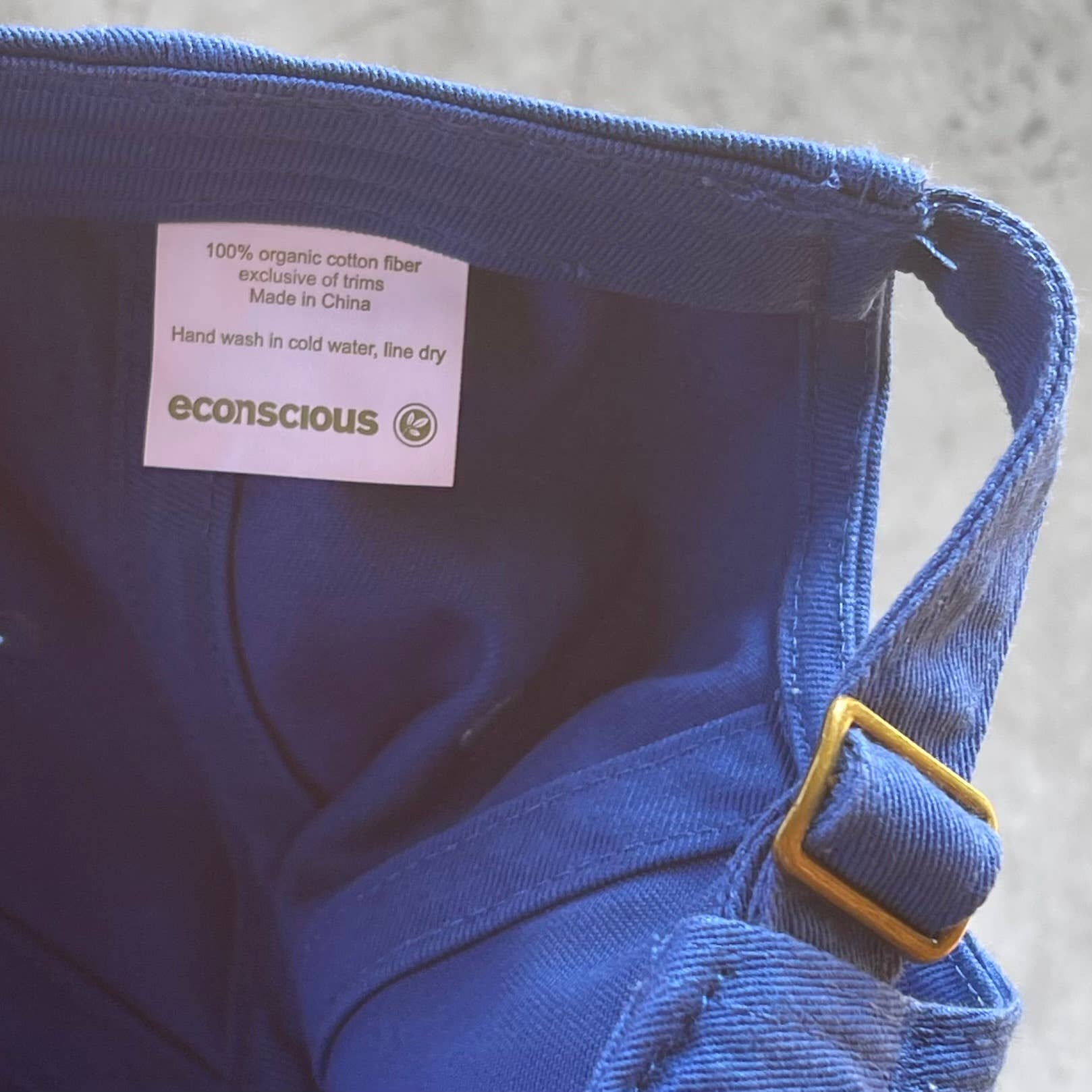 -one size fits most hat in royal blue -embroidered in the US, manufactured overseas -made with 100% organic cotton