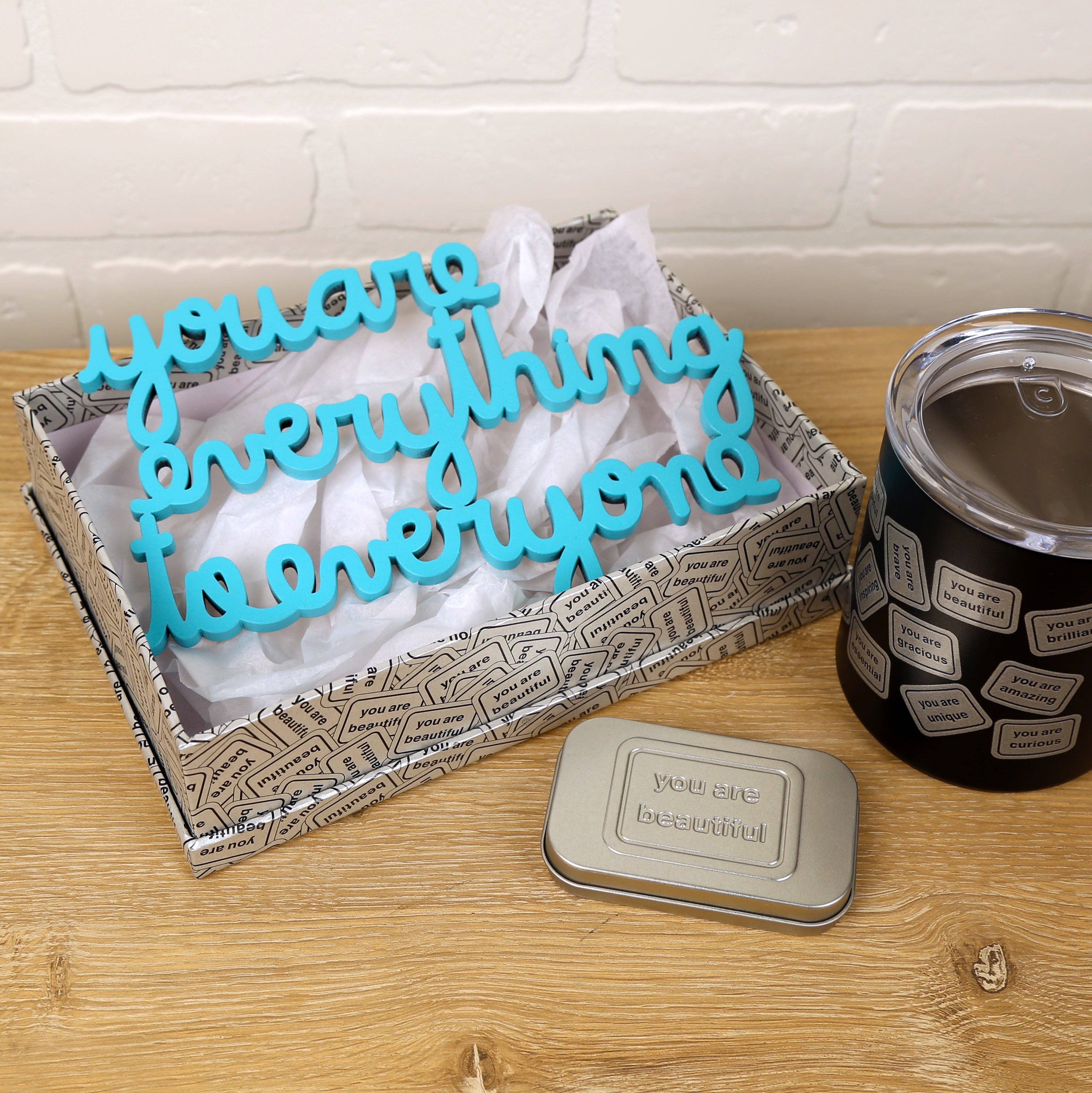 You Are Everything To Everyone. Celebrate the heart of your home with this beautifully crafted laser-cut wall art, made with moms in mind. A meaningful reminder of a mother’s love, strength, and grace—perfect for Mother’s Day or any day she deserves to feel seen, appreciated, and deeply loved. Each piece measures 7.25" wide x 5.25" high x 0.25" thick, and is available in a variety of charming colors to complement any space. Arrives wrapped in a You Are Beautiful gift box. This piece is made entirely in our studio in Chicago.
